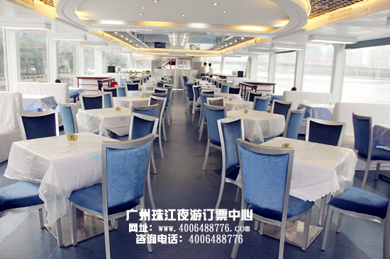 该游轮设有290客位,船型宽阔、座位舒适,全通透落地玻璃,观光视觉好,设有大型观光露台。一层二层座位舒适,视野开阔,三层观光甲板不设座位,方便各位游客与美丽的珠江夜景合影留念。